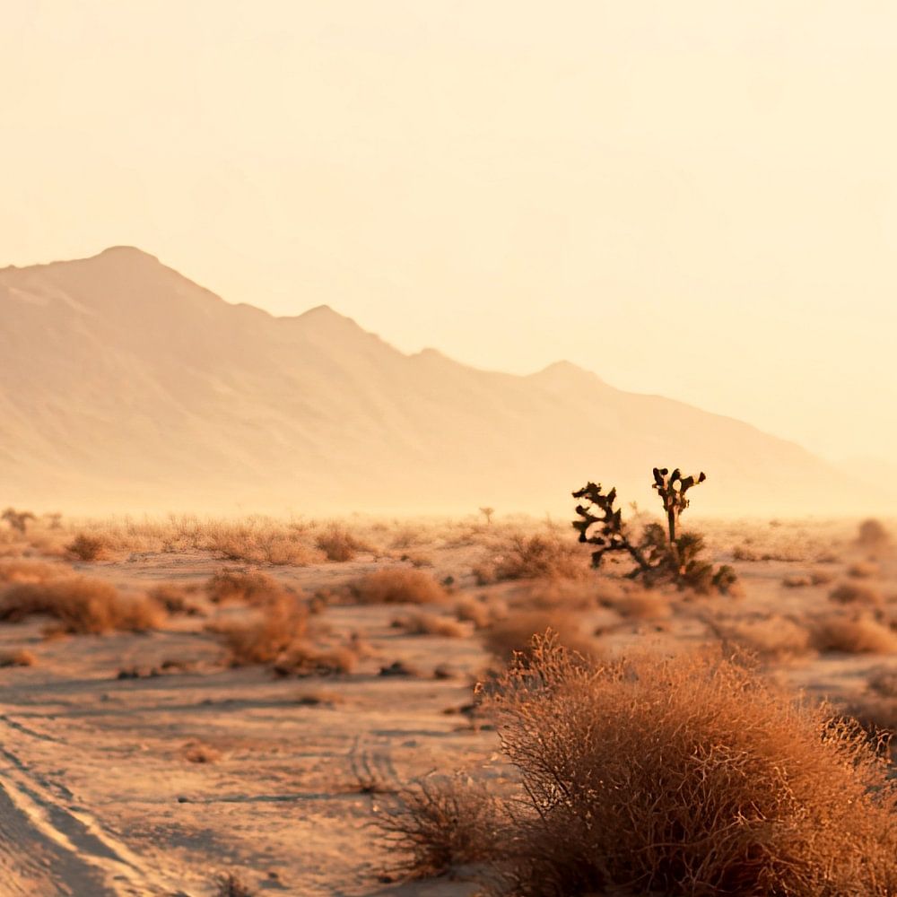 Le style est photographique avec une touche cinématographique, où l'espace et la perspective occupent une place centrale. La palette de couleurs se compose de tons sable, de beige chaud, de doré doux et de nuances claires de ciel et de montagne, ce qui permet à l'image de se fondre avec des matériaux naturels et des intérieurs apaisants.