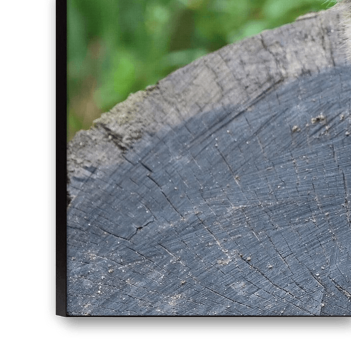 La curiosité sur un trône Sur une souche d'arbre usée par les intempéries, tel un mirador naturel, un suricate est assis, alerte et fier. Son corps élancé est tendu, sa tête tournée vers l'objectif - comme s'il nous avait surpris en train de découvrir un secret. Le fond vert souligne son rôle de gardien de la forêt, toujours sur ses gardes, toujours curieux.