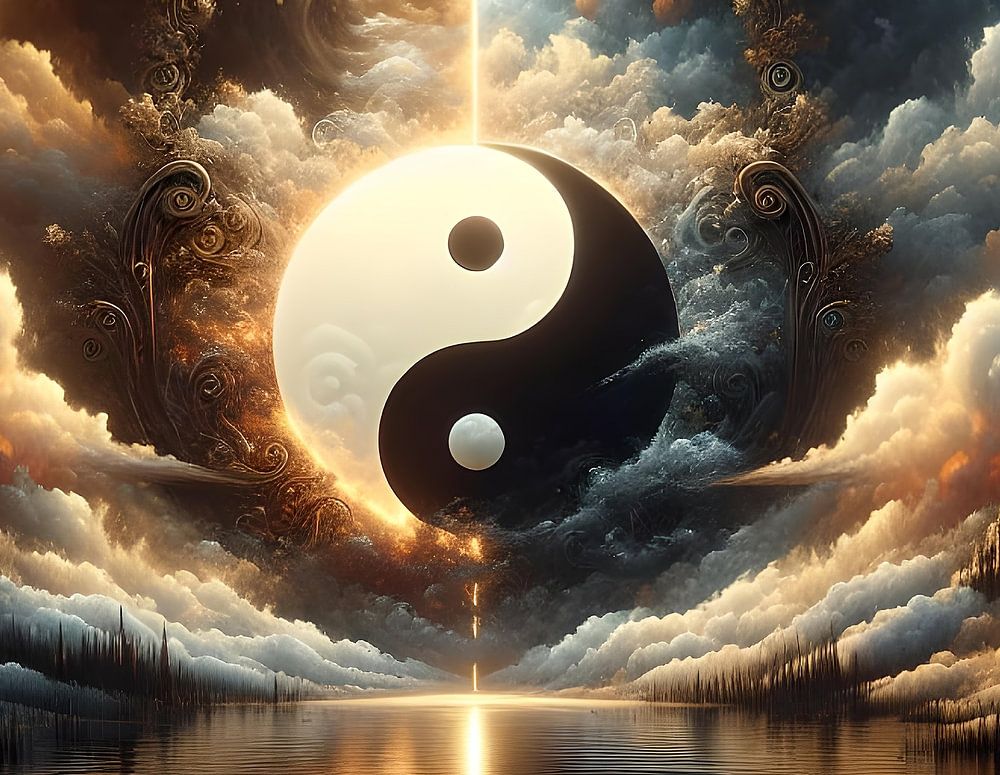 Symbole du Yin et du Yang dans la nature projeté la nuit