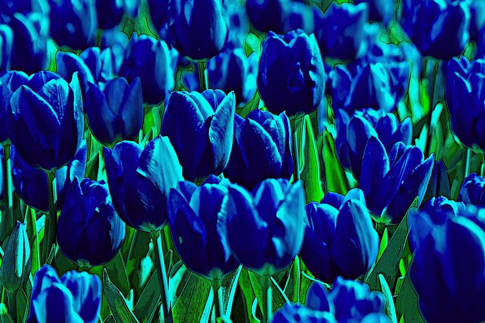 Achetez cette photo TULIPES BLEUES TRAITÉES par Henriette Tischler van Sleen sur toile, aluminium, ArtFrame ou photographie (encadrée), impression d'art en haute qualité et tout format.