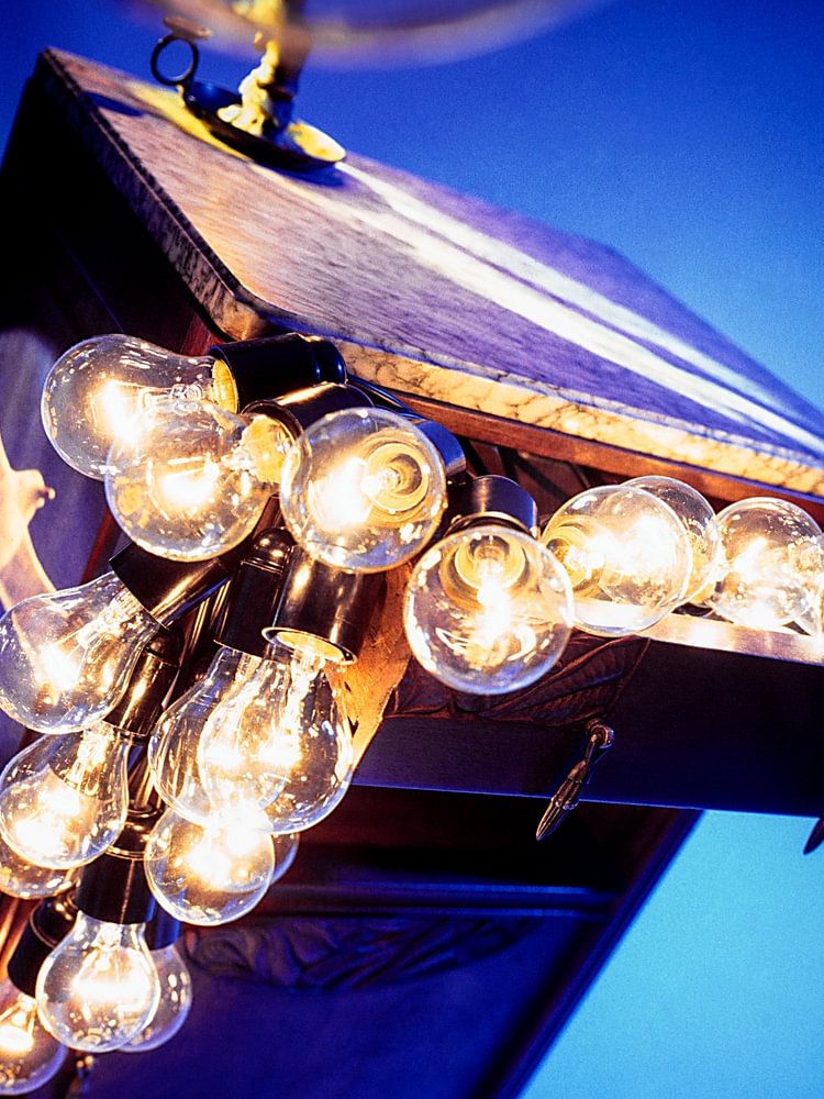 La table de chevet, avec les lampes collées, est photographiée sur une diapositive de 4"x5" ; inch.