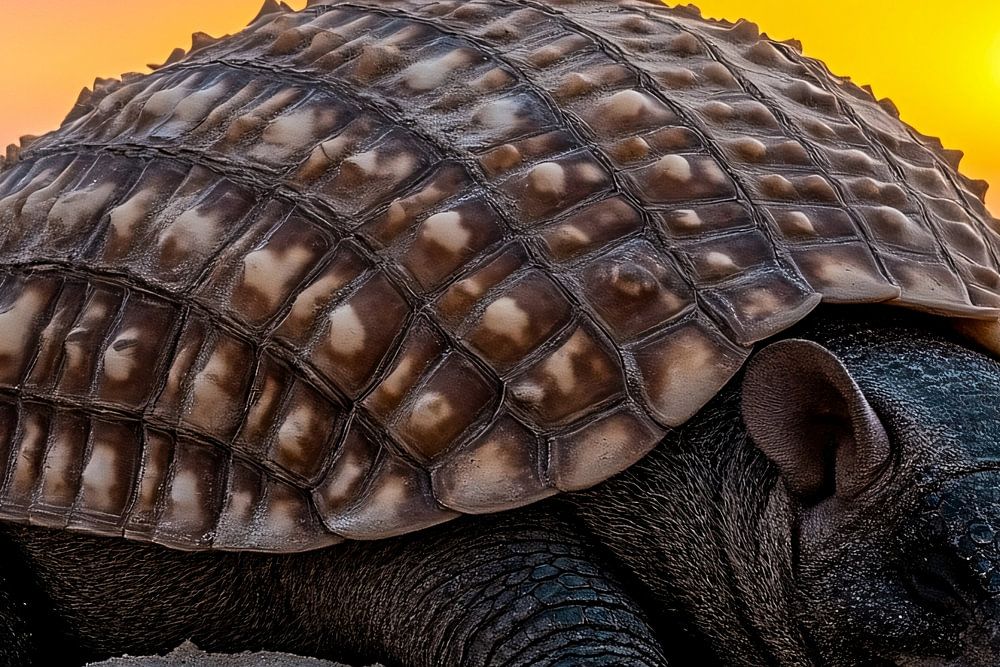 Ce dessin impressionnant montre un tatou allongé paisiblement sur une surface sablonneuse alors que le soleil se couche. L'image respire le calme et la sérénité grâce aux couleurs douces et chaudes du soleil couchant qui contrastent magnifiquement avec la texture du bouclier de l'animal. Idéale pour les amoureux de la nature et les passionnés de photographie, cette image offre un élément visuel unique, parfait pour créer une atmosphère chaleureuse et sereine dans la maison. Cette œuvre d'art s'intègre parfaitement dans les intérieurs modernes et apporte la beauté de la nature directement dans votre espace de vie.
