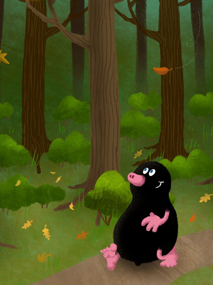 Il s'agit d'une illustration tirée de mon livre pour enfants "La Taupe aime la Boule de Pétrole", réalisée avec Procreate sur l'iPad. La taupe vit dans la forêt, où elle rencontre une nature magnifique et des animaux mignons. Les enfants apprennent ainsi quelque chose sur la nature en sortant avec Mol.