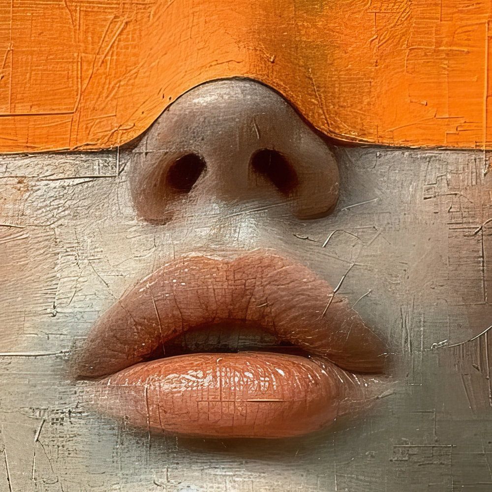 Détails : portrait, femme, moderne, abstrait, silence, orange, gris, visage