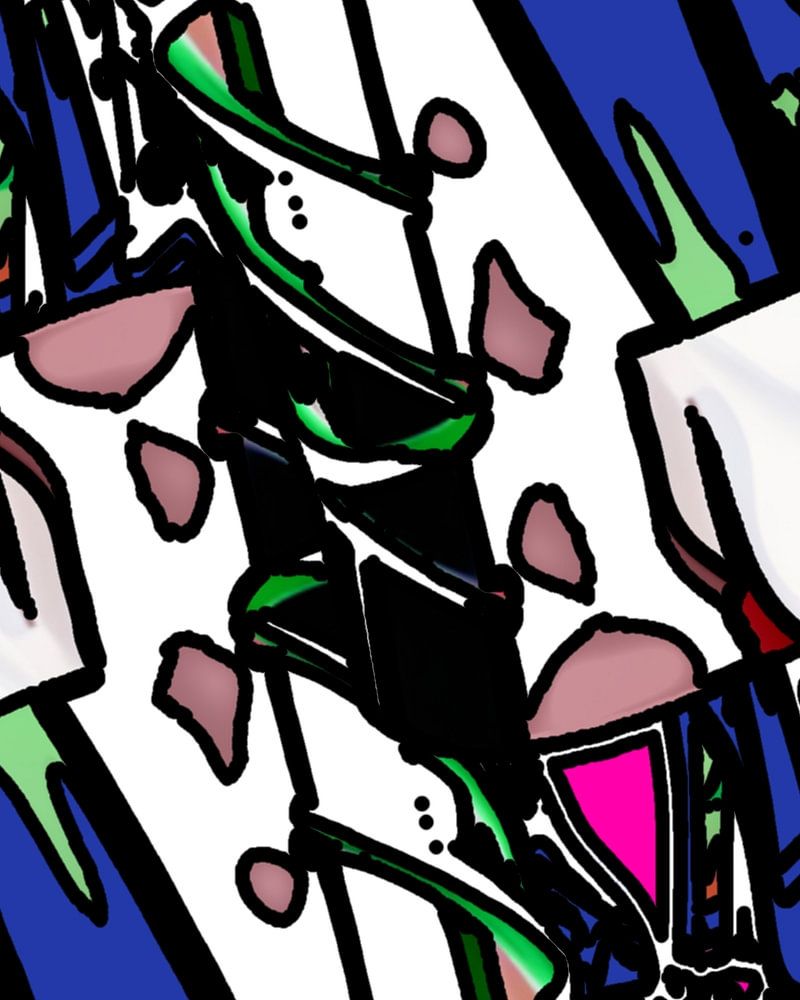 De plus, cette image est peinte dans des couleurs éclatantes telles que : Bleu, rose et vert