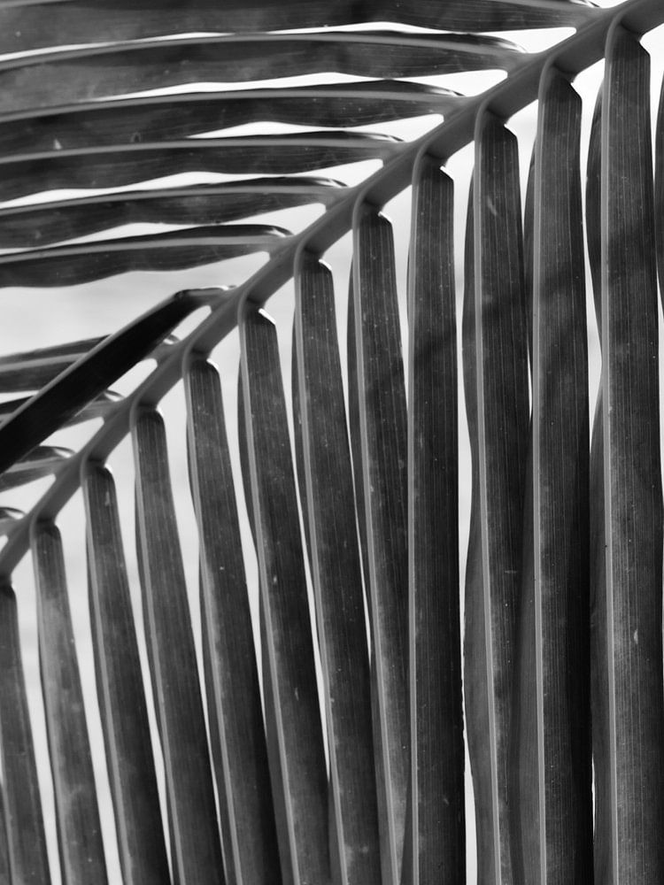Découvrez la simplicité avec ce gros plan en noir et blanc d'une feuille de palmier. Les lignes épurées et les textures naturelles apportent une touche tropicale apaisante à n'importe quelle pièce. Parfait pour les amateurs d'art minimaliste et d'intérieurs inspirés par la nature.