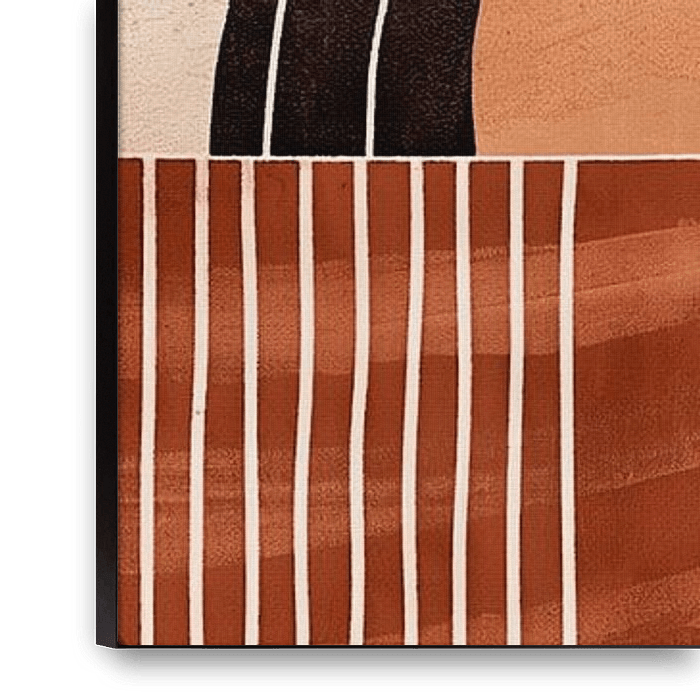 Cette pièce de la collection Japandi reflète un mélange subtil de formes et de textures. Des lignes ondulées et des cercles texturés dans des tons de terre cuite apportent une dynamique chaleureuse à tout espace. La composition joue avec l'ombre et la lumière, créant une sensation de profondeur qui s'intègre parfaitement dans les…