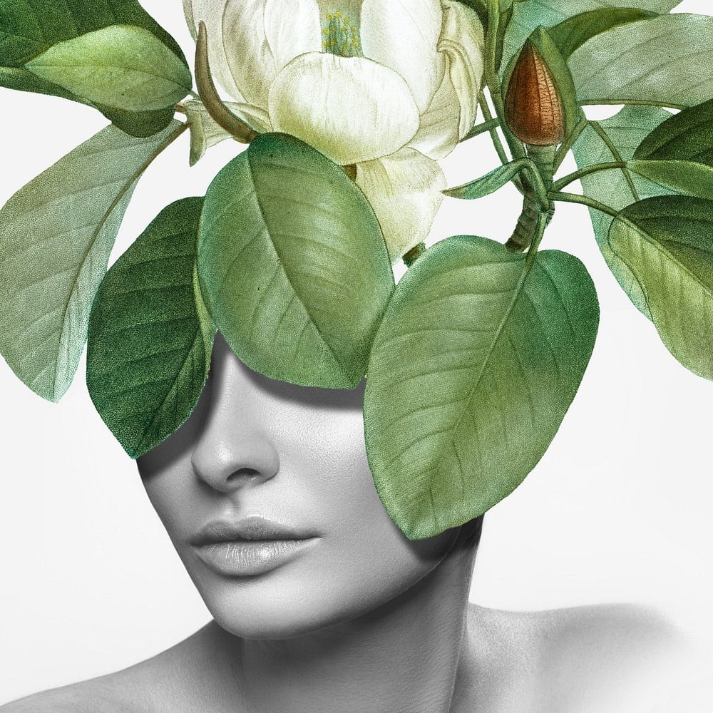 Portrait surréaliste, romantique, botanique et joyeux d'une femme.