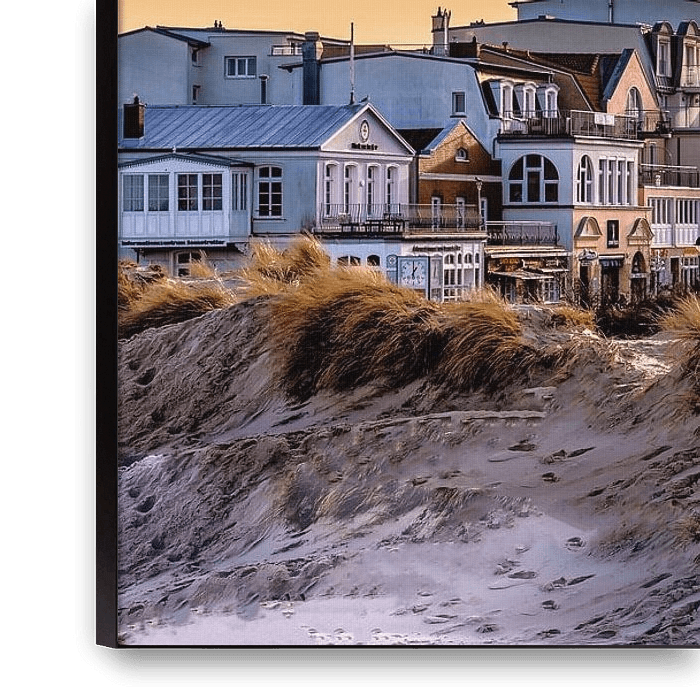 Ici, j'ai dû prendre une photo à contre-jour. Une prise de vue très difficile en début d'après-midi. Le contre-jour donne à l'image une couleur orange. La photo a été prise depuis les dunes. Le Teepott et le phare sont des emblèmes connus de Warnemünde. Grâce à la prise de vue à contre-jour, les bâtiments apparaissent légèrement en…