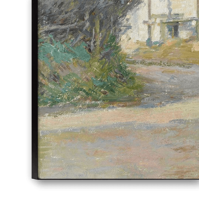 Achetez Theodore Robinson~Maison avec échafaudage, Giverny en tant que reproduction sur toile, aluminium, ArtFrame ou photographie (encadrée), impression d'art en haute qualité et tout format