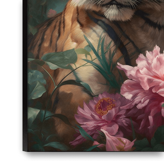 Achetez cette œuvre d'art florale Tigre parmi les fleurs de la jungle par But First Framing sur toile, aluminium, ArtFrame ou photographie (encadrée), impression d'art en haute qualité et tout format.