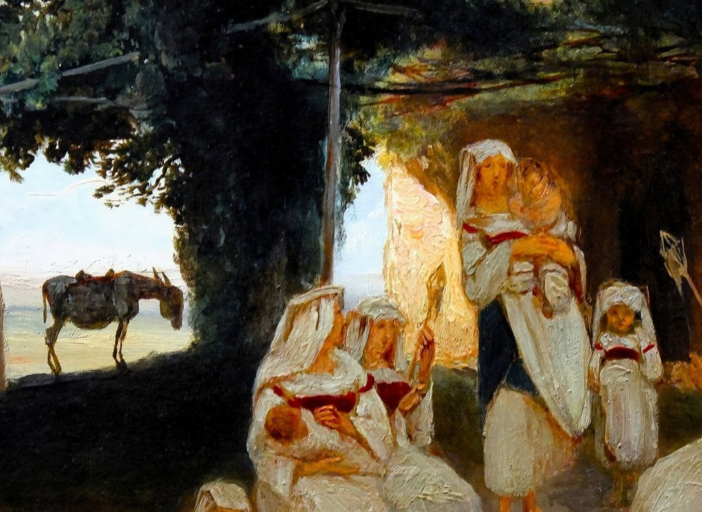 Weaverwomen in Cervara" de Carl Blechen est une peinture de paysage captivante qui s'écarte des œuvres les plus connues de l'artiste, qui plongent souvent dans les aspects romantiques et sublimes de la nature. Cette œuvre se distingue par une exploration poignante du travail humain sur fond d'environnement naturel et bâti, offrant un aperçu de la vie quotidienne des femmes au début du XIXe siècle. Peinte après la visite de Blechen en Italie, cette œuvre reflète la fascination de l'artiste pour la campagne italienne, sa lumière et ses habitants.
