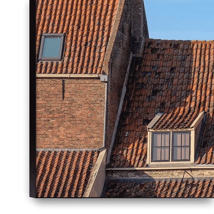 Maisons historiques d'Enkhuizen avec des toits traditionnels en tuiles rouges et des façades en briques, photographiées dans la rue De Bocht.