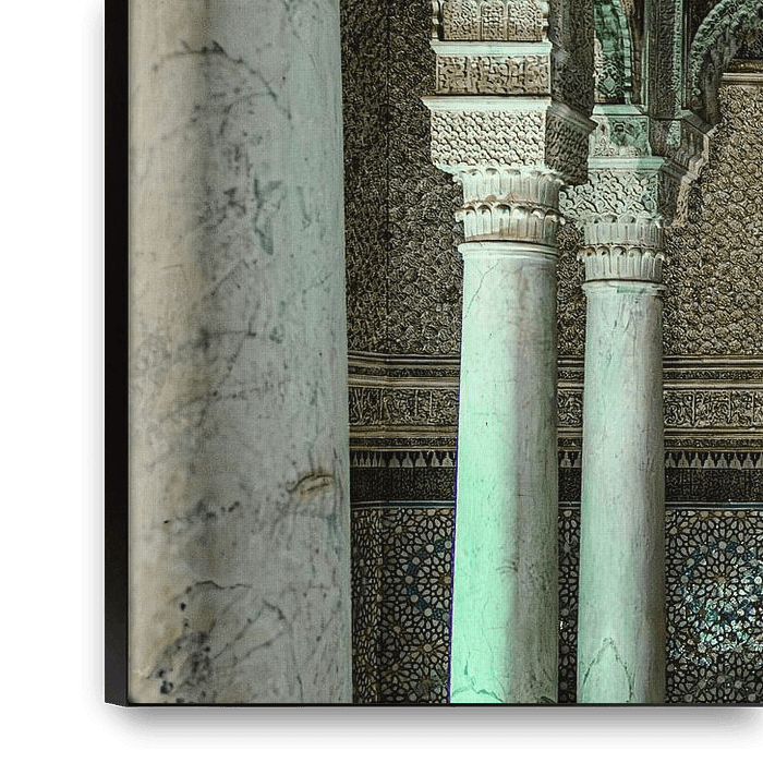 Mausolée Tombeaux saadiens avec colonnes et ornements à Marrakech Médina Maroc