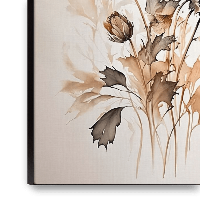 Un tableau gracieux qui capture la beauté de la nature dans des tons bruns chauds. Des fleurs délicates aux nuances terreuses se fondent en un tableau harmonieux d'élégance botanique.