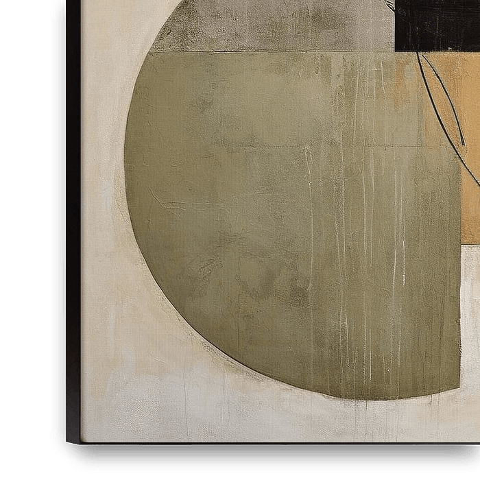 Détails : abstrait, cercles, superposé, terreux, neutre, travail au trait, géométrique, minimaliste, texture, discret, Japandi Couleurs : beige, vert olive, marron, gris, noir