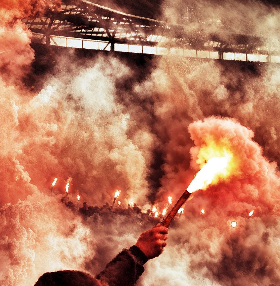 Achetez cette photo Torche Feijenoord 'Curva Nord'. par Peter Lodder sur toile, aluminium, ArtFrame ou photographie (encadrée), impression d'art en haute qualité et tout format.