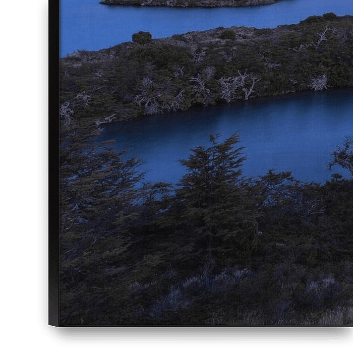 Le Torres del Paine se reflète dans les eaux calmes du lac Pehoé pendant l'heure bleue. Les montagnes s'élèvent puissamment sous un ciel d'un bleu profond, tandis que les premières lumières du soir accentuent doucement les contours du paysage patagon. Un silence serein, presque magique, emplit l'air, là où l'eau, les montagnes et le…