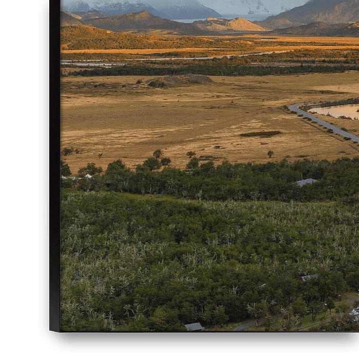 Cette photo immortalise le moment magique de l'heure dorée à Torres del Paine, vue depuis Rio Serrano. La lumière chaude et douce du soleil transforme les imposants sommets montagneux et la rivière en une composition sereine, presque onirique. Le jeu d'ombres et de lumières souligne la beauté sauvage de la Patagonie et invite le…