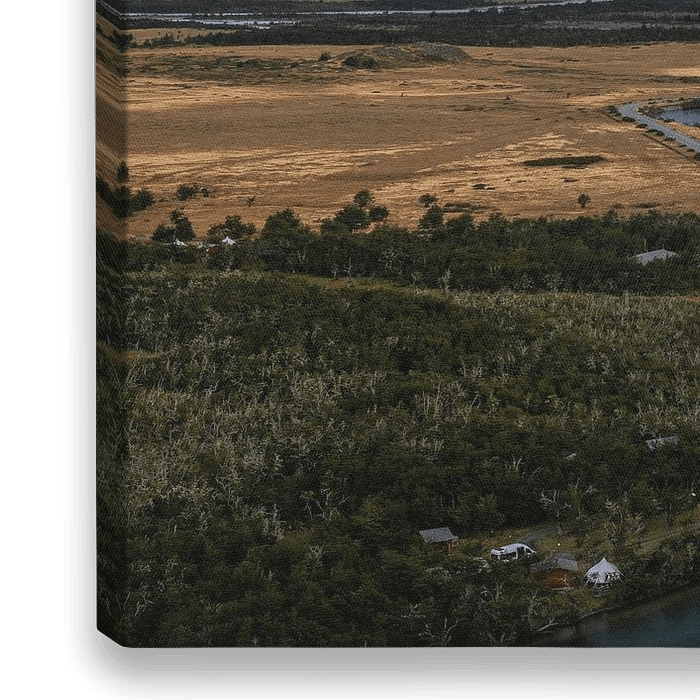 Cette photo immortalise le moment magique de l'heure dorée à Torres del Paine, vue depuis Rio Serrano. La lumière chaude et douce du soleil transforme les imposants sommets montagneux et la rivière en une composition sereine, presque onirique. Le jeu d'ombres et de lumières souligne la beauté sauvage de la Patagonie et invite le…
