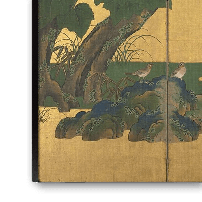 Les phénix sont des oiseaux fantastiques qui, dit-on, habitent les paulownias et mangent du bambou, et célèbrent les souverains vertueux. Les paons sont des oiseaux qui se plaisent dans le lac du Pays Pur du Bouddha Amida, un paradis où beaucoup espéraient autrefois se retrouver après la mort.