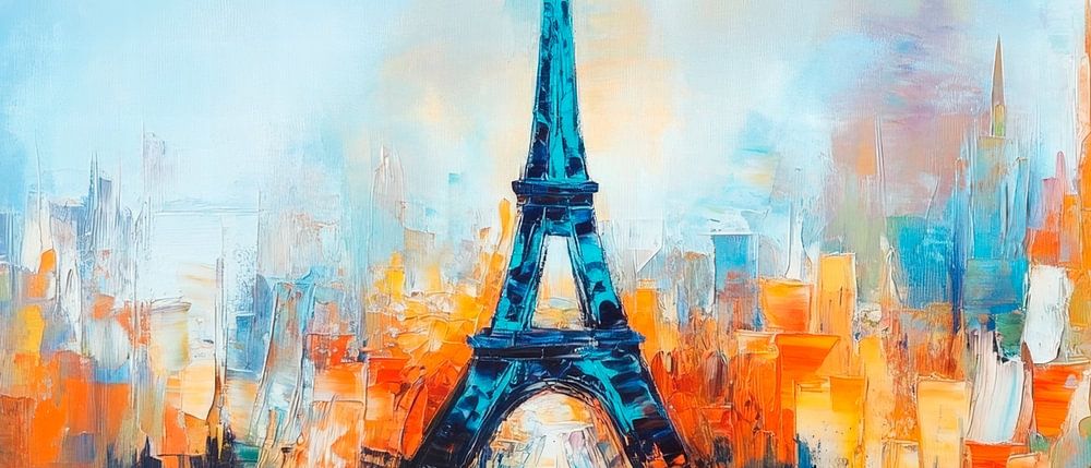 Un jeu fascinant de douces nuances de bleu et d'orange présente la silhouette majestueuse de la Tour Eiffel, entourée d'un paysage urbain animé et impressionniste. Cette composition pleine d'énergie apporte le sentiment d'une aventure romantique dans le salon et inspire à relier le quotidien à l'âme de Paris. Un accroche-regard parfait pour toute pièce pleine de vie et de créativité.