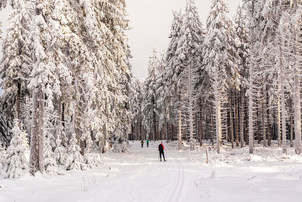 Tour de ski de fond par un temps impérial dans la forêt enneigée de Thuringe près de Floh-Seligenthal - Thuringe - Allemagne
