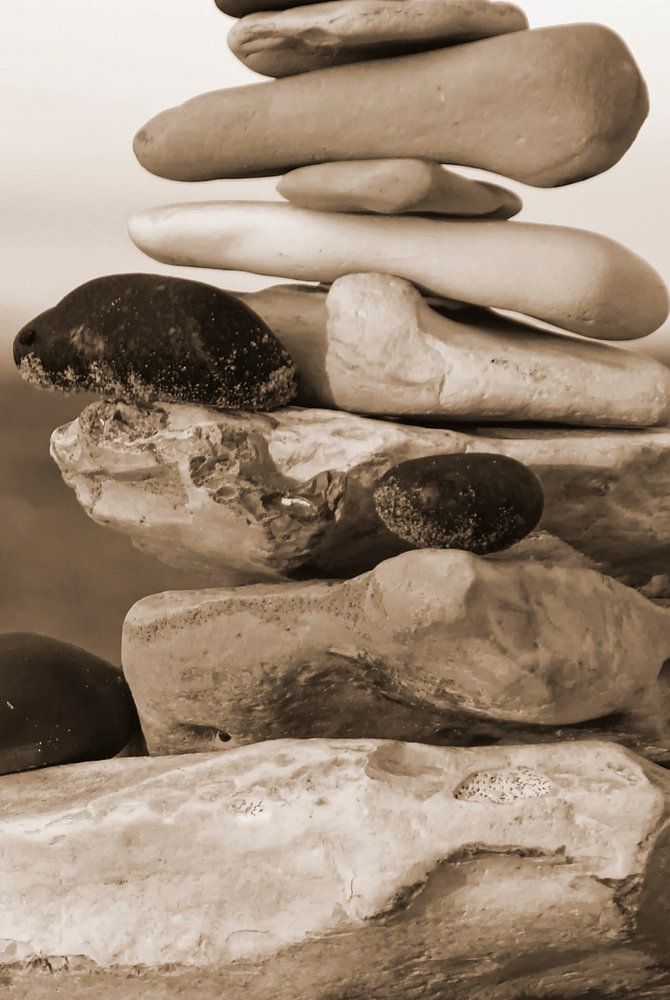 Une tour de pierres sur une plage de la mer du Nord au Danemark.
