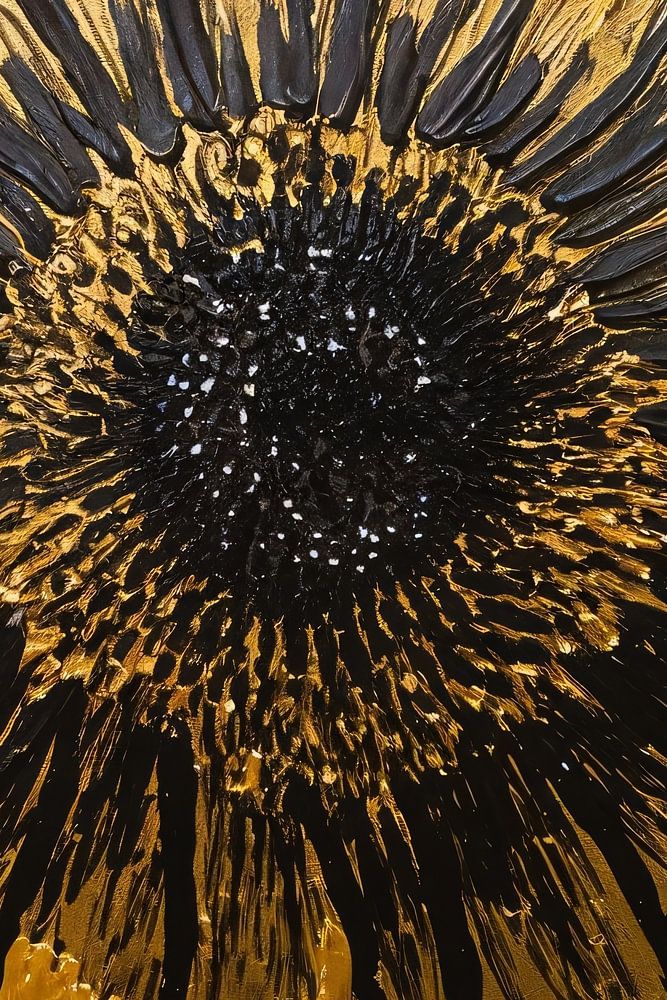 Ce magnifique motif représente un tournesol abstrait, peint dans de riches tons dorés et noirs. Ce tableau respire l'élégance et la modernité, et s'intègre parfaitement dans les intérieurs contemporains. La texture détaillée et les couleurs contrastées rendent le tableau vibrant et élégant, idéal pour créer une atmosphère unique dans le salon, le bureau ou la chambre à coucher. Avec sa combinaison de couleurs frappantes et ses formes intrigantes, il ne manquera pas d'attirer l'attention et d'apporter une touche chaleureuse et sophistiquée à n'importe quelle pièce. Un must pour les amateurs d'art abstrait et de motifs naturels.