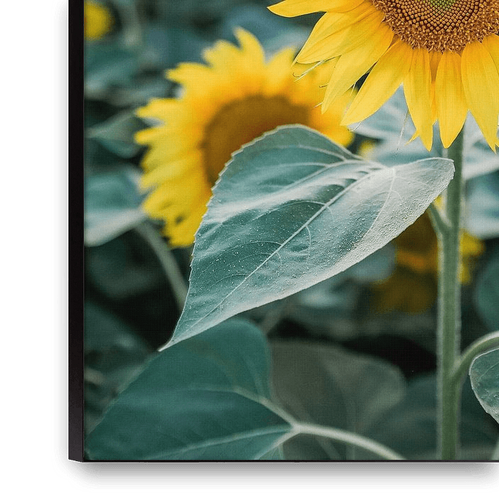 Un tournesol rayonnant s'élève fièrement au-dessus du champ, baigné d'une douce lumière naturelle et dorée. Les tons jaunes chauds contrastent magnifiquement avec le vert frais des feuilles et créent une atmosphère estivale et vivifiante. Cette photo apporte énergie, optimisme et un sentiment de vie en plein air dans votre intérieur,…