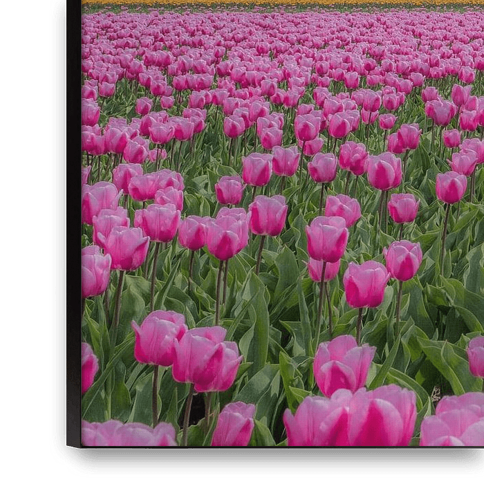 Achetez cette œuvre d'art de paysage Train à travers les champs de tulipes par Moetwil en van Dijk - Fotografie sur toile, aluminium, ArtFrame ou photographie (encadrée), impression d'art en haute qualité et tout format.