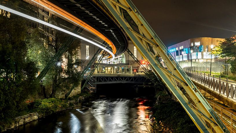 Train suspendu de Wuppertal dans la nuit par Johnny Flash