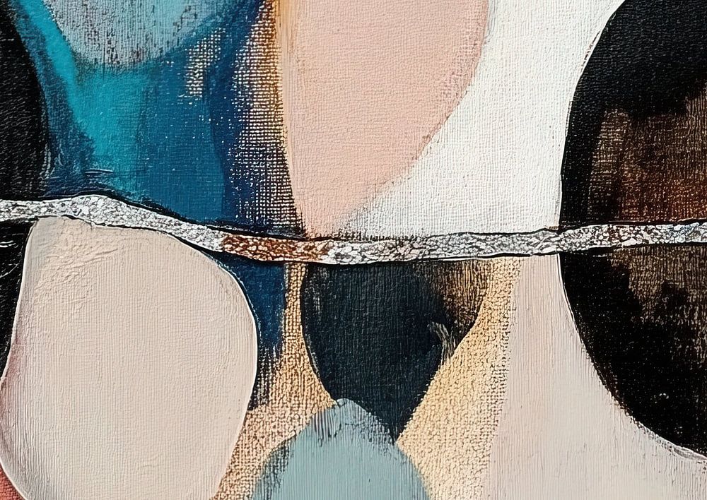 Détails : abstrait, pastel, bleu, noir, blanc, rose, formes, couleurs douces, art moderne, apaisant