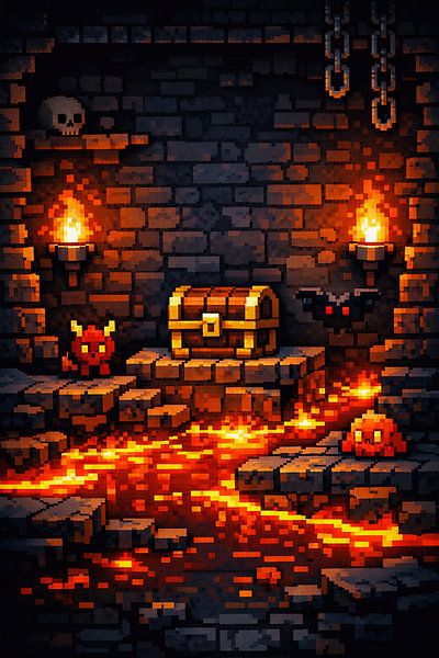 Acheter ce art numérique Trésor du donjon Retro Pixel Lava par Dodik Hariyono sur toile, aluminium, ArtFrame ou photographie (encadrée), impression d'art en haute définition et tout type de format.