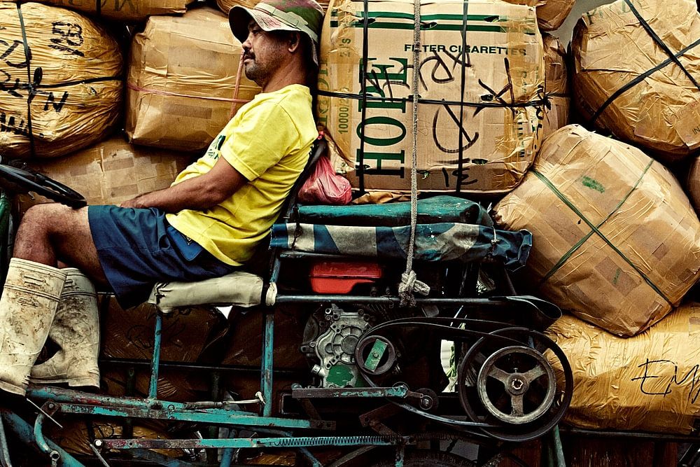 Tricycle des Philippines utilisé comme camion.