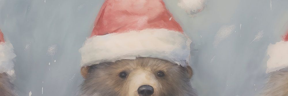 Trois adorables ours bruns prêts pour Noël. Les couleurs pastel et le faible contraste créent une atmosphère sereine. Apportez la chaleur de Noël dans votre maison avec cette charmante pièce !