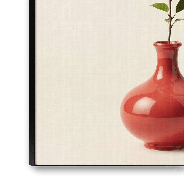 Trois vases colorés, rouge, sarcelle et jaune-bleu dégradé, tenant chacun une branche feuillue, sont disposés sur un fond neutre.