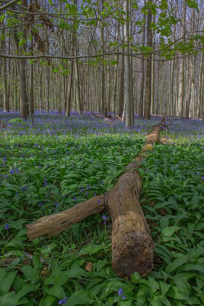 Au cœur de la forêt, là où la lumière, filtrée par les jeunes feuilles, tombe doucement sur le sol, s'étend un tapis bleu-violet de jacinthes sauvages. Leur parfum est subtil, leur présence grandiose. Entre les troncs élancés gît un arbre tombé, patiné et silencieux, à la fois souvenir de ce qui fut et porteur d’une nouvelle vie. Ici, le temps ne semble pas s’écouler, mais se répéter dans un cycle sans fin de croissance et de lâcher-prise.