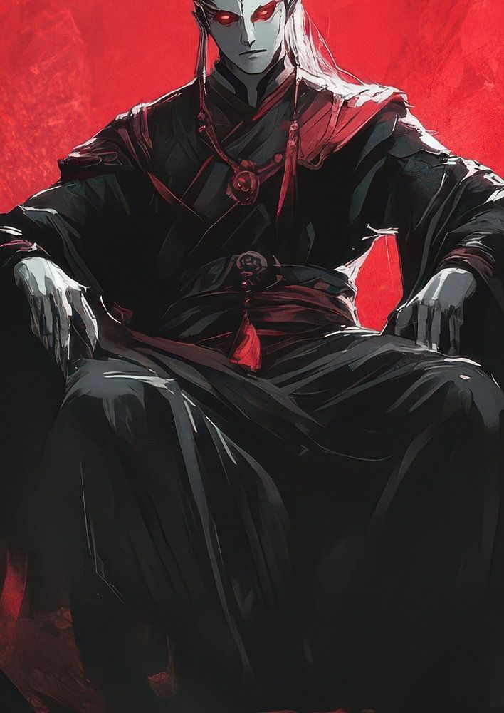 Un souverain sombre émerge sous la lueur inquiétante d'une lune cramoisie. Coiffée d'ombres et d'apparat, la figure dégage une autorité froide - à la fois démon et souverain. Cette œuvre d'art capture le moment qui précède le commandement, où le silence détient un pouvoir infini. Une symphonie visuelle de domination, de mythologie et d'arcanes.
