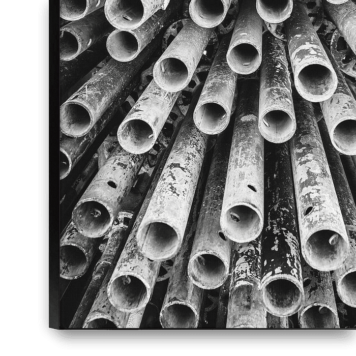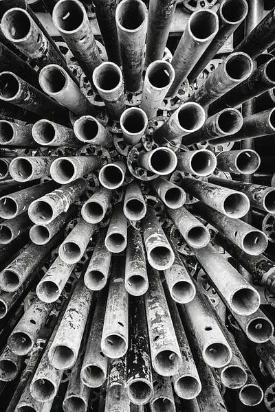 Enregistrement photographique de tubes d'échafaudage d'une manière idiosyncrasique.