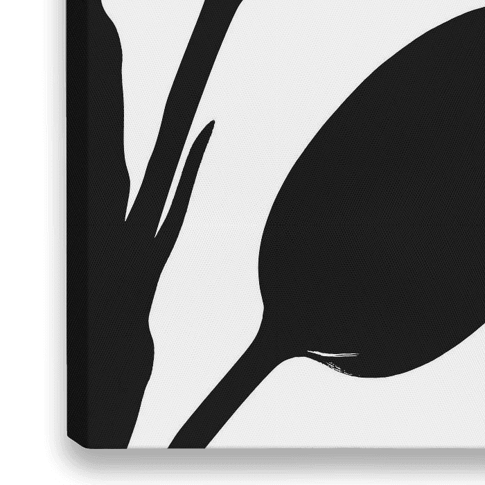 Photographie abstraite, élégante et gracieuse. Ambiance japonaise, simplicité et minimalisme. Design moderne floral et botanique, formes organiques et couleurs neutres. Une représentation brute, une photo en noir et blanc prise directement avec l'appareil photo, sans aucune retouche, qui laisse apparaître les imperfections de la tulipe. Un aspect Wabi-Sabi, imparfait mais justement remarquable, unique et particulier.