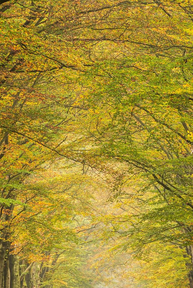Tunnel de chênes aux couleurs automnales dans la réserve naturelle de Planken Wambuis. par Bram Lubbers