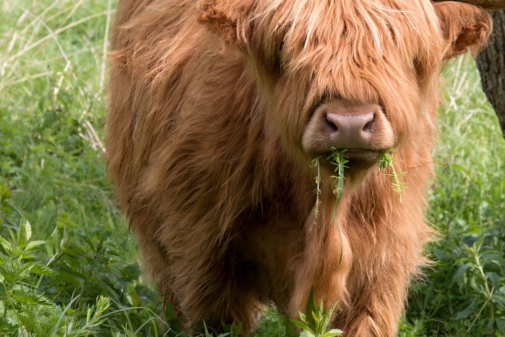 Un Highlander écossais mange de l'herbe dans le Dintelse Gorzen.