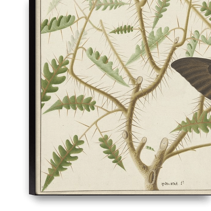 Achetez Un buisson fleuri avec deux papillons étrangers, Hermanus de Wit en tant que reproduction sur toile, aluminium, ArtFrame ou photographie (encadrée), impression d'art en haute qualité et tout format