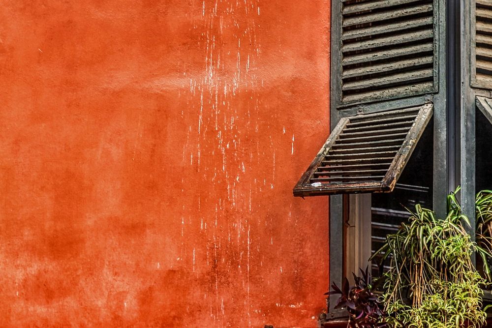 En ville il faut toujours lever les yeux , c'est la meilleure façon d'observer les petit détails que tout le monde ne voit pas forcément . Contraste entre ce mur rouge et cette fenêtre typique créer pour ne pas laisser entrer les rayons du soleil trop chaud l'été .