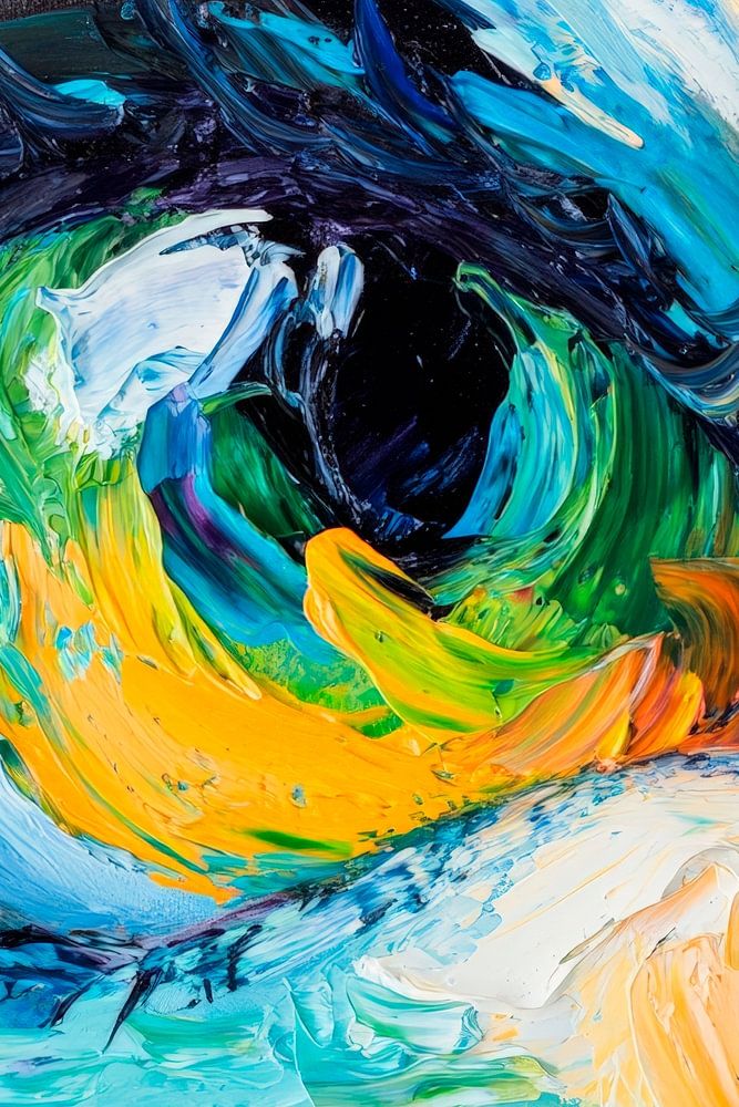 Des couleurs fascinantes et des coups de pinceau dynamiques enveloppent l'œil expressif qui fascine le spectateur. Les tons verts vifs et le bleu éclatant confèrent à l'œuvre une légèreté harmonieuse. Cette œuvre d'art est parfaite pour le salon afin d'enflammer les conversations et de créer une atmosphère créative.