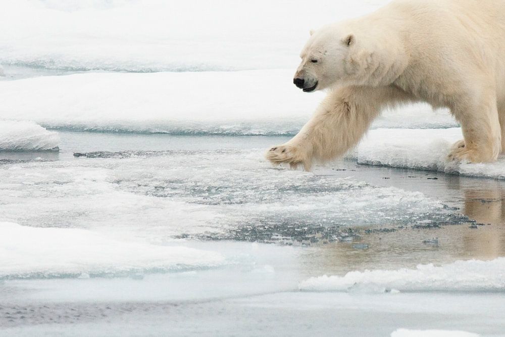 Visite du Spitzberg, Svalbard en été. Nous avons eu la chance d'apercevoir plusieurs ours polaires sur la banquise. Spécial pour voir comment les ours polaires se débrouillent dans un monde plein de glace et de neige. Je pense que cette photo est un excellent symbole des défis du changement climatique auxquels les ours polaires sont confrontés. Ils essaient constamment de garder un sol solide sous leurs pattes.