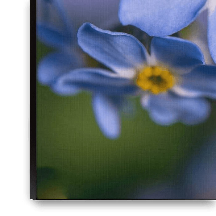 Achetez cette œuvre d'art florale Un panorama de myosotis bleus en rangée par Marjolijn van den Berg sur toile, aluminium, ArtFrame ou photographie (encadrée), impression d'art en haute qualité et tout format.