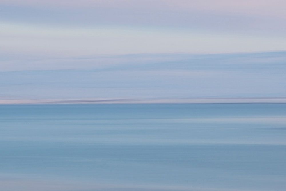 Photographie panoramique = bouger avec l'appareil photo = c'est très amusant à faire. Sur la côte, vous travaillez avec un mouvement horizontal qui crée un paysage abstrait. Avec les belles couleurs arctiques hivernales, cela donne un effet très doux.