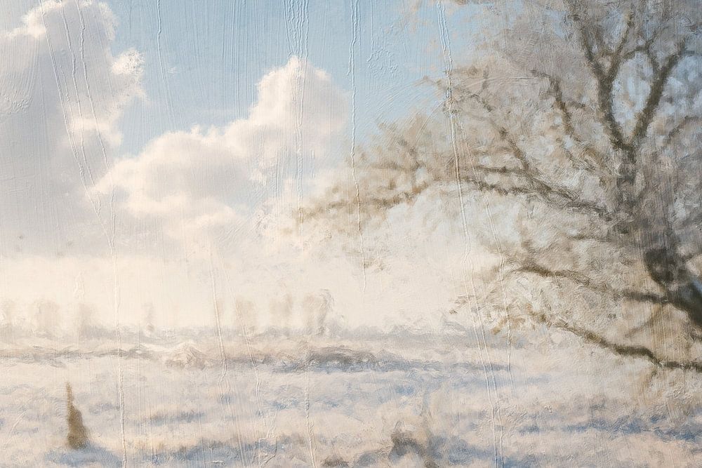Ce travail est basé sur ma propre photographie prise au cours d'une matinée d'hiver. La combinaison du paysage glacé, de la lumière douce du soleil et du calme serein a été une source d'inspiration parfaite pour capturer cette scène sous forme de peinture. En utilisant la photo comme point de départ, j'ai pu traduire avec précision l'atmosphère de ce moment - le calme, le froid, la lumière chatoyante - dans une peinture avec plus de profondeur, de couleur et de sentiment.